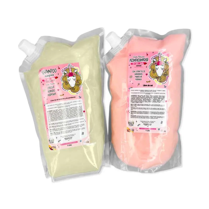Descubre el Eco Kit Acondicionador Crecimiento, creado para fortalecer y estimular el crecimiento saludable del cabello de manera sostenible. Este kit incluye dos bolsas de refill: un shampoo que promueve el crecimiento capilar y un acondicionador que hidrata y suaviza profundamente. Con un enfoque eco-amigable, este kit cuida de tu cabello y del medio ambiente, ofreciendo resultados visibles y duraderos para un cabello más fuerte, denso y manejable. El kit contiene: 1 Respuesto shampoo mágico 1L + 1 Repuesto acondicionador sandía 1L